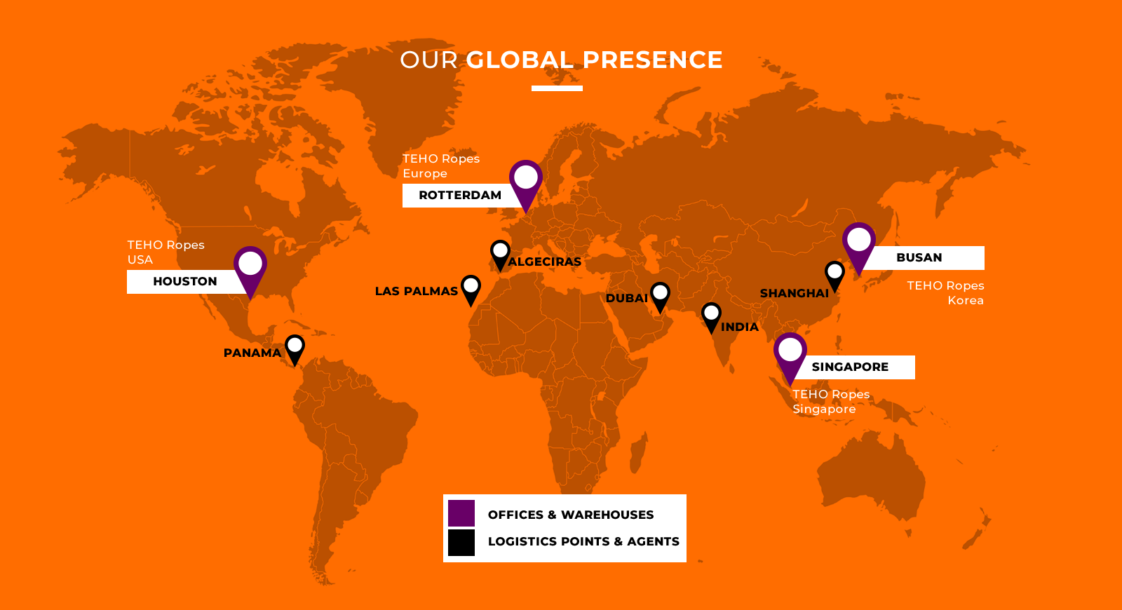 Mainly servicing customers active in Maritime, Industry and Oil & Gas, TEHO Ropes Europe has gained a leading position within the EMEA, Africa and India region by offering a complete range of quality mooring equipment from stock strengthened by class certification, short delivery times and unequalled customer service.